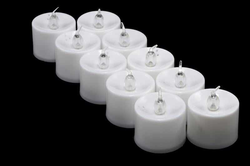 Lovely set of 12 flameless battery operated candles to light up your celebration and gathering. It comes with a replaceable lithium battery AG10. The LED flameless tea light candle lasts for more than 24 hours. It also Includes a On/Off switch for easy use. Completely safe and no flame while offers a flickering candle light which mimics a real candle.