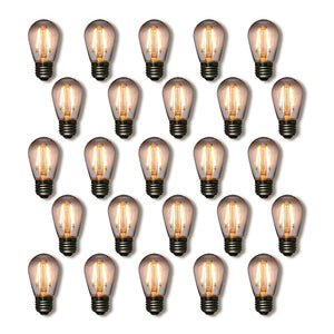 25-Pack. LunaBazaar presents the next generation LED Bulb with our Warm White Shatterproof Light Bulbs! Though not indestructible, our break-resistant light bulbs are made from industrial polycarbonate so you can feel confident they will withstand the wear and tear from whatever location you install them. Our shatterproof bulbs are super-bright as well and have an great sign bulb look. Worried about the risk of broken glass and replacing glass bulbs? Use these shatterproof plastic S14 bulbs as replacements in your existing string lights for your Wedding ceremony. These plastic S14 bulbs have a standard E26 / E27 base so they will fit into any existing string lights with this standard base or into any typical household light fixture to save you money and energy. We also have more Standard Bulbs and Globe Bulbs for your lighting needs.