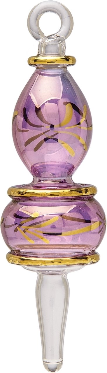Epitomize the exotic this holiday season with our light purple Egyptian hand-blown glass Christmas ornaments. Each unique egyptian ornament is etched with gold lines and handcrafted by exceptionally skilled artisans in a centuries-old tradition of glass blowing. These beautiful glass ornaments are true treasures and will make great gifts and distinctive decorations for the coming season.