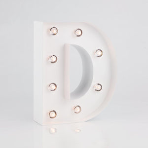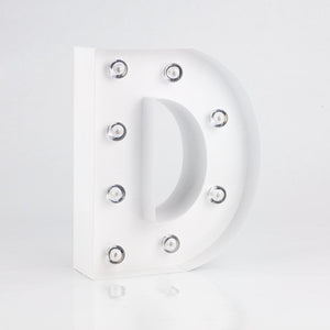 These vintage-like marquee letter glamour lights are professionally made and are extremely popular as 3D room decoration and event signage. Each battery powered letter is made of heavy, solid metal and can be hung (has keyhole slot in back for easy hanging) on walls, placed on top of a reception tables or even on mantels. Newlyweds can highlight their wedding by combining their first initials with an "&" to create their own signature on the cake or candy table during their reception. Our illuminated marquee lights are portable and highly versatile. They measure 8 inches tall, 2 inches thick, and will take 2x AA batteries so they are not required to be placed near an outlet.