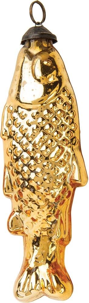 Mercury Glass Fish Ornament, Medium Gold