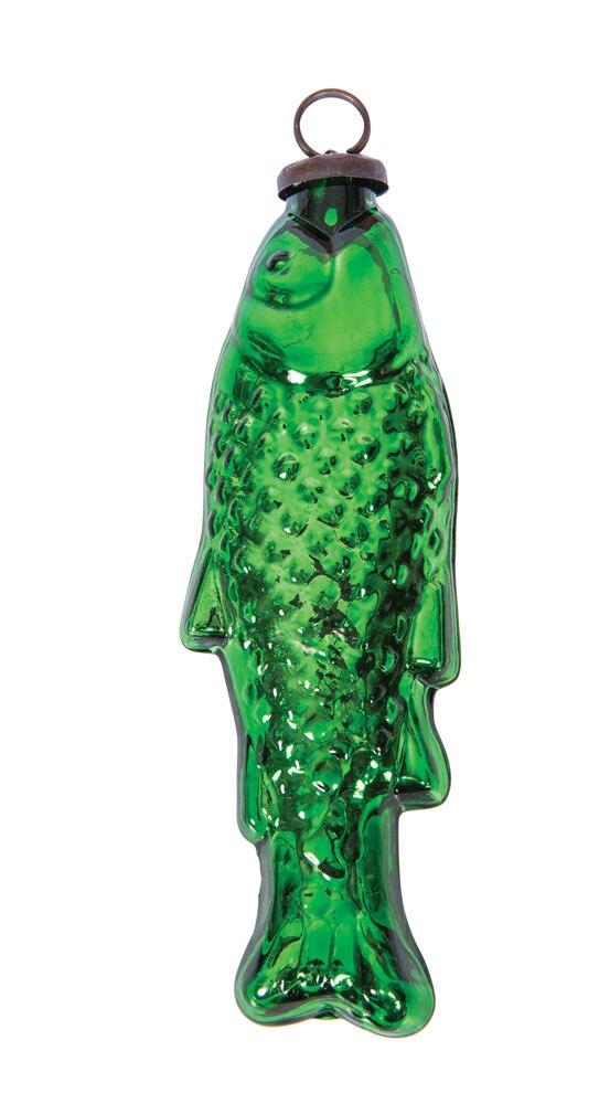 Mercury Glass Fish Ornament, Medium Grass Green
