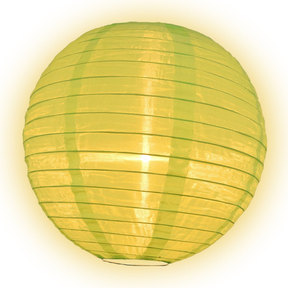 12" Neon Green Shimmering Nylon Lantern, Even Ribbing, Durable, Hanging Decoration