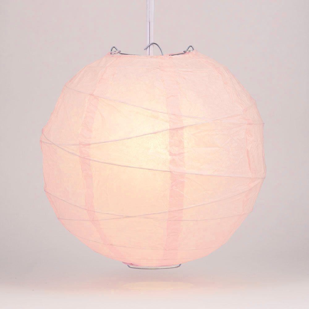 CLOSEOUT BULK PACK (12) 14 Inch Free-Style Ribbed Rose Quartz Pink Shimmering Nylon Lantern, Durable, Hanging