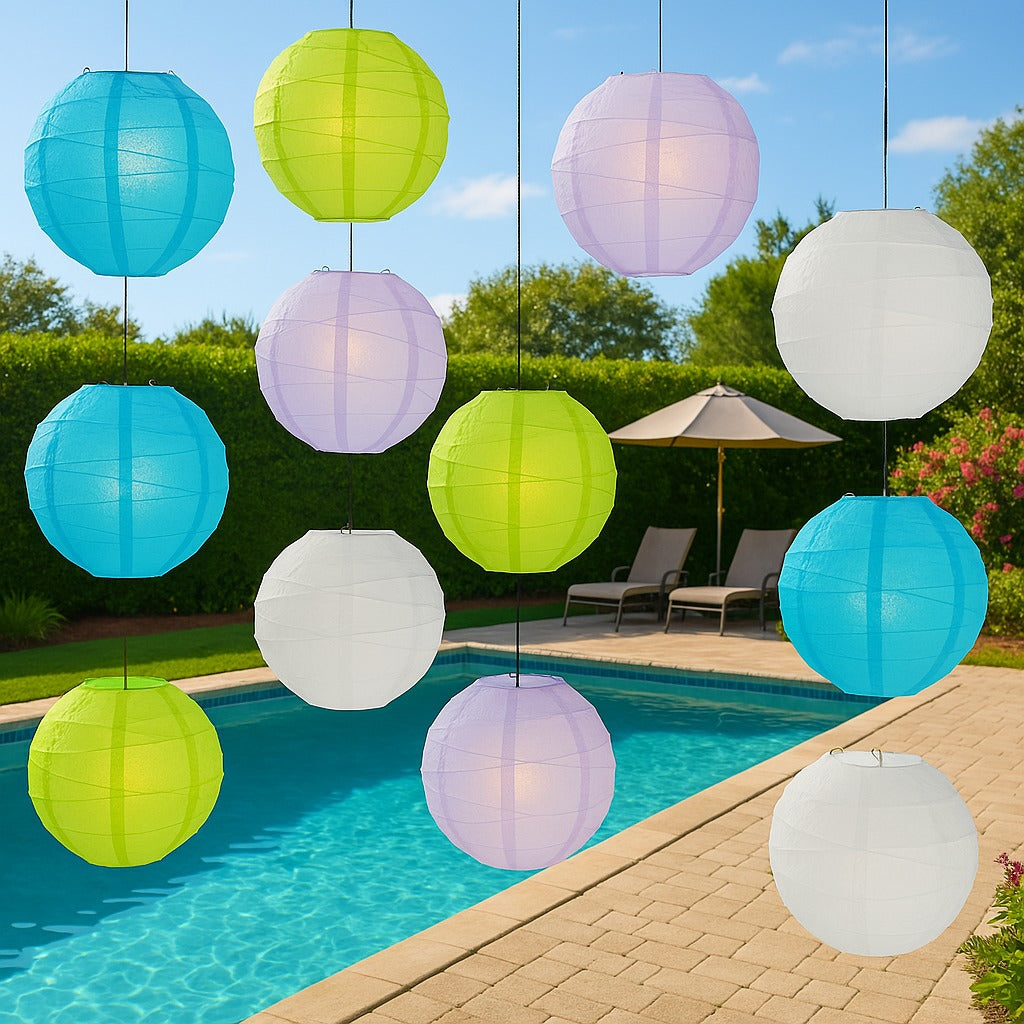 Perfect for patios, poolside parties, weddings, or serene indoor spaces. Hang them high and let the calming colors wash over your space like a cool breeze on a warm day.