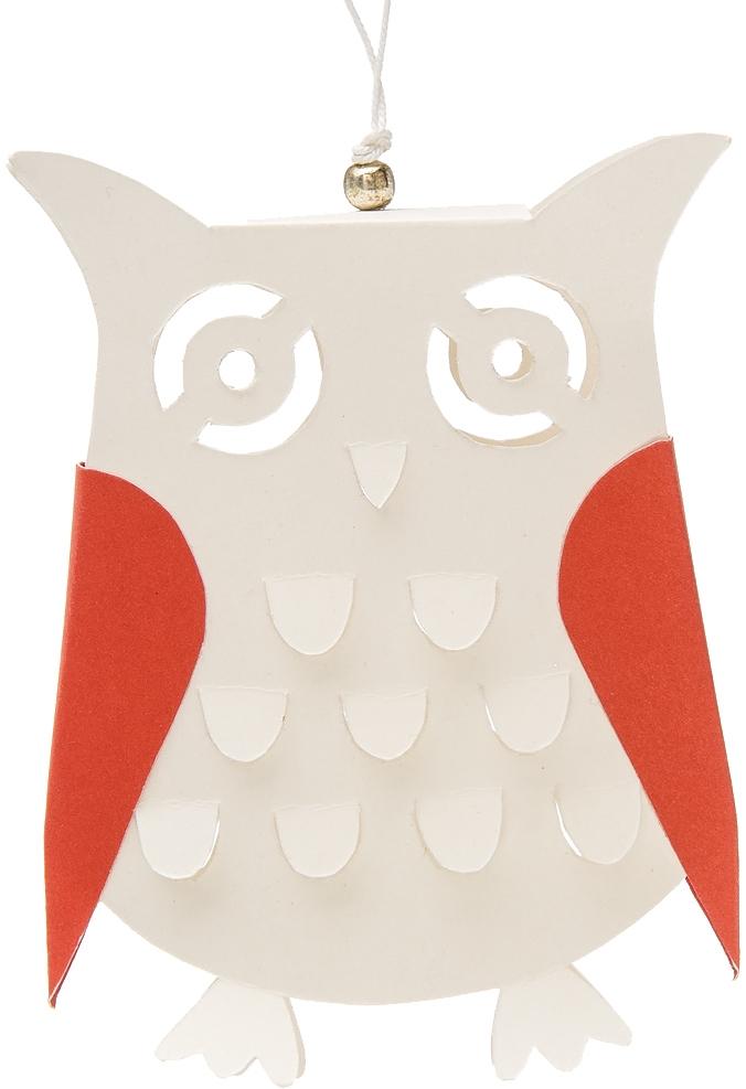 White and Red Kirigami Owl Ornament