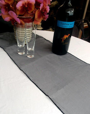 Our organza table runner in black is a gorgeous way to accentuate your party, wedding, or other event. The sheer, shimmering fabric of organza table linens is appropriate for just about any occasion, whether it's a summery neighborhood social or an elegant cocktail party. These organza table runners for weddings and other events have hemmed edges and a rich turquoise color that goes well with a variety of other hues. A gorgeous organza table overlay can do double duty as a sash or chair bow, and the options for decorating are nearly limitless.