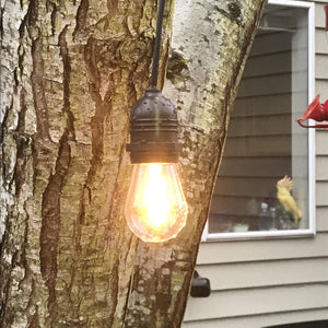 Edison Light Bulbs would be pairing them with our high-quality, commercial grade SPT-2W Fantado brand pendant light cord kit. Luna Bazaar offers this weatherproof, 11 foot black cord suitable for all outdoor uses. Don't worry - it's OK to leave our cord outdoors. It can handle all kinds of wind and rain. With its long cord length, this lighting accessory is ideal for hanging a