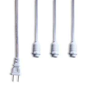 Each candelabra size socket accepts E12 base light bulbs up to 25-watts (75W Total). Our cord is 19-feet long with sockets evenly-spaced so placement of your AC plug outlet is less of a concern allowing more versatility throughout your home or event space. The options are limited only by your creativity.Product Specifications:# of Sockets: 3x Evenly-Spaced SocketsSocket Type/Size: Candelabra E12Total Cord Length: 19FTSpacing Between Sockets: ~39.4"Drop Distance: ~23.6"