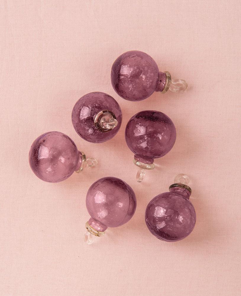 Purple Cassandra Mini Recycled Glass Ball Ornament Set of 6
