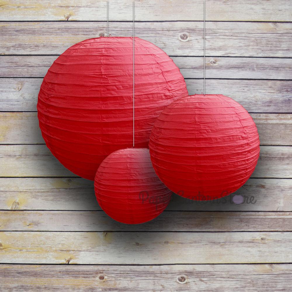 8/12/16" Red Decorative Round Paper Lanterns, Parallel Ribbing, Hanging (3-Pack Cluster) (Light Not Included) Our convenient Party Packs like this 3-Pack Cluster includes 3 Paper Lanterns of different sizes to make that eye-catching cluster look! Many of our customers love this cluster look so please use it as starting inspiration for your next design project. Paper Lanterns, or