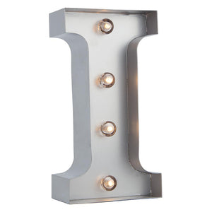 These vintage-like marquee letter glamour lights are professionally made and are extremely popular as 3D room decoration and event signage. Each battery powered letter is made of heavy, solid metal and can be hung (has keyhole slot in back for easy hanging) on walls, placed on top of a reception tables or even on mantels. Newlyweds can highlight their wedding by combining their first initials with an "&" to create their own signature on the cake or candy table during their reception. Our illuminated marquee lights are portable and highly versatile. They measure 8 inches tall, 2 inches thick, and will take 2x AA batteries so they are not required to be placed near an outlet.
