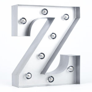 These vintage-like marquee letter glamour lights are professionally made and are extremely popular as 3D room decoration and event signage. Each battery powered letter is made of heavy, solid metal and can be hung (has keyhole slot in back for easy hanging) on walls, placed on top of a reception tables or even on mantels. Newlyweds can highlight their wedding by combining their first initials with an "&" to create their own signature on the cake or candy table during their reception. Our illuminated marquee lights are portable and highly versatile. They measure 8 inches tall, 2 inches thick, and will take 2x AA batteries so they are not required to be placed near an outlet.