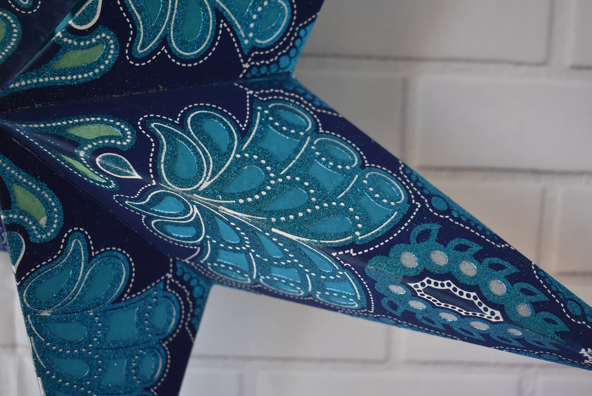 Luna Bazaar's hand-crafted hanging Paper Star Lanterns are beautiful as a home decor accessory or as an outdoor Wedding decoration. These star lantern lamps are high-quality - made from thick paper and punched with a special star design. Available in many colors and patterns, our unique star lanterns can be seen hung on the sets of many Hollywood movies and TV shows. Our stars come from direct from India and will make a beautiful display or decoration in any room in the home. They add a fun touch to any party or event and you can pair with one of our lamp cord kits to create wonderful ambiance lighting.