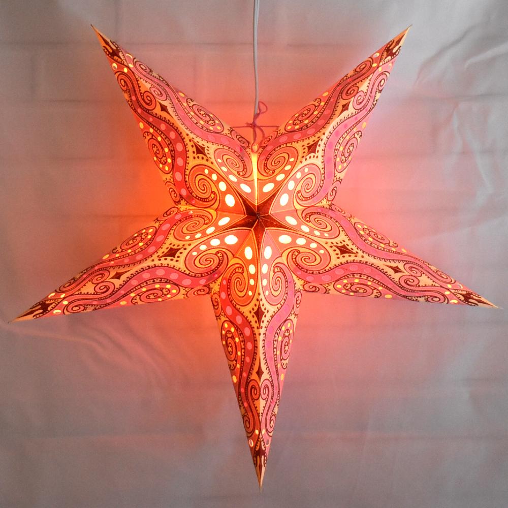 Luna Bazaar's hand-crafted hanging Paper Star Lanterns are beautiful as a home decor accessory or as an outdoor Wedding decoration. These star lantern lamps are high-quality - made from thick paper and punched with a special star design. Available in many colors and patterns, our unique star lanterns can be seen hung on the sets of many Hollywood movies and TV shows. Our stars come from direct from India and will make a beautiful display or decoration in any room in the home. They add a fun touch to any party or event and you can pair with one of our lamp cord kits to create wonderful ambiance lighting.