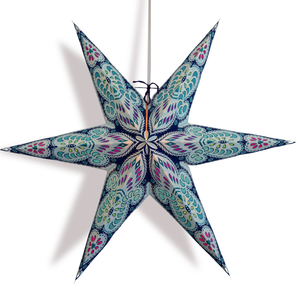 LunaBazaar's hand-crafted hanging Paper Star Lanterns are beautiful as a home decor accessory or as an outdoor Wedding decoration. These star lantern lamps are high-quality - made from thick paper and punched with a special star design. Available in many colors and patterns, our unique star lanterns can be seen hung on the sets of many Hollywood movies and TV shows. Our stars come from direct from India and will make a beautiful display or decoration in any room in the home. They add a fun touch to any party or event and you can pair with one of our lamp cord kits to create wonderful ambiance lighting.