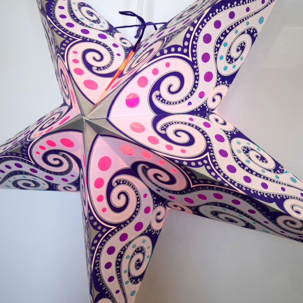 Luna Bazaar's hand-crafted hanging Paper Star Lanterns are beautiful as a home decor accessory or as an outdoor Wedding decoration. These star lantern lamps are high-quality - made from thick paper and punched with a special star design. Available in many colors and patterns, our unique star lanterns can be seen hung on the sets of many Hollywood movies and TV shows. Our stars come from direct from India and will make a beautiful display or decoration in any room in the home. They add a fun touch to any party or event and you can pair with one of our lamp cord kits to create wonderful ambiance lighting.