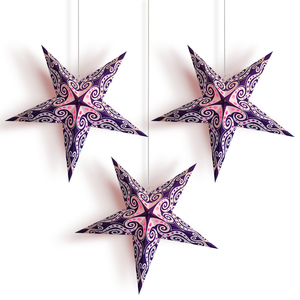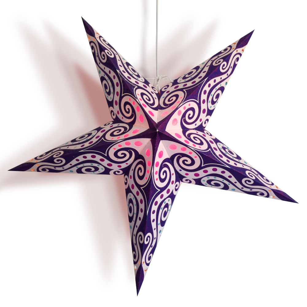 LunaBazaar's hand-crafted hanging Paper Star Lanterns are beautiful as a home decor accessory or as an outdoor Wedding decoration. These star lantern lamps are high-quality - made from thick paper and punched with a special star design. Available in many colors and patterns, our unique star lanterns can be seen hung on the sets of many Hollywood movies and TV shows. Our stars come from direct from India and will make a beautiful display or decoration in any room in the home. They add a fun touch to any party or event and you can pair with one of our lamp cord kits to create wonderful ambiance lighting.