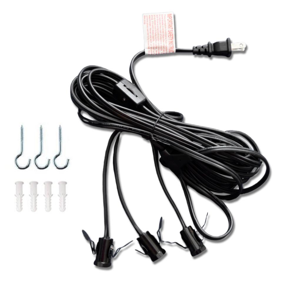 Product Specifications: Colors: Red Black. Dimensions: 24" Diameter. Material: Heavy-Duty Paper. Lighting:Included! Triple Socket Cord - 1x 19FT Outdoor Rated Cord with 3x Evenly-Spaced Sockets and LED Shatterproof Light Bulbs. Total Cord Length: 19FT Spacing Between Sockets: ~39" Drop Distance: ~ 23.6 " Spacing Between Sockets: ~39" Distance from Plug to On/Off Switch: 37" Distance from On/Off Switch to 1st Junction: 98" Distance from 1st Junction to 2nd Junction: 39" Distance from 2nd Junction to 3rd Junction: 39"