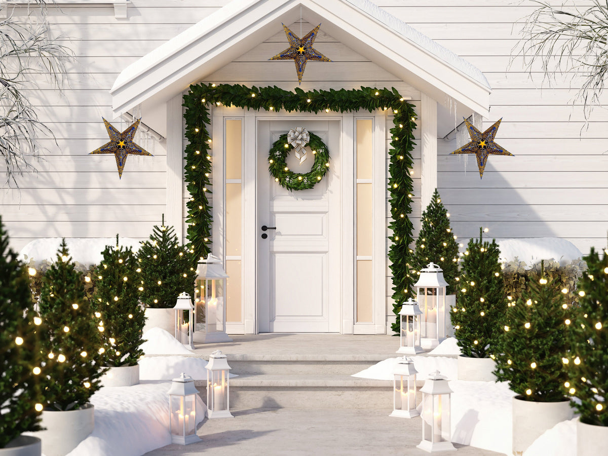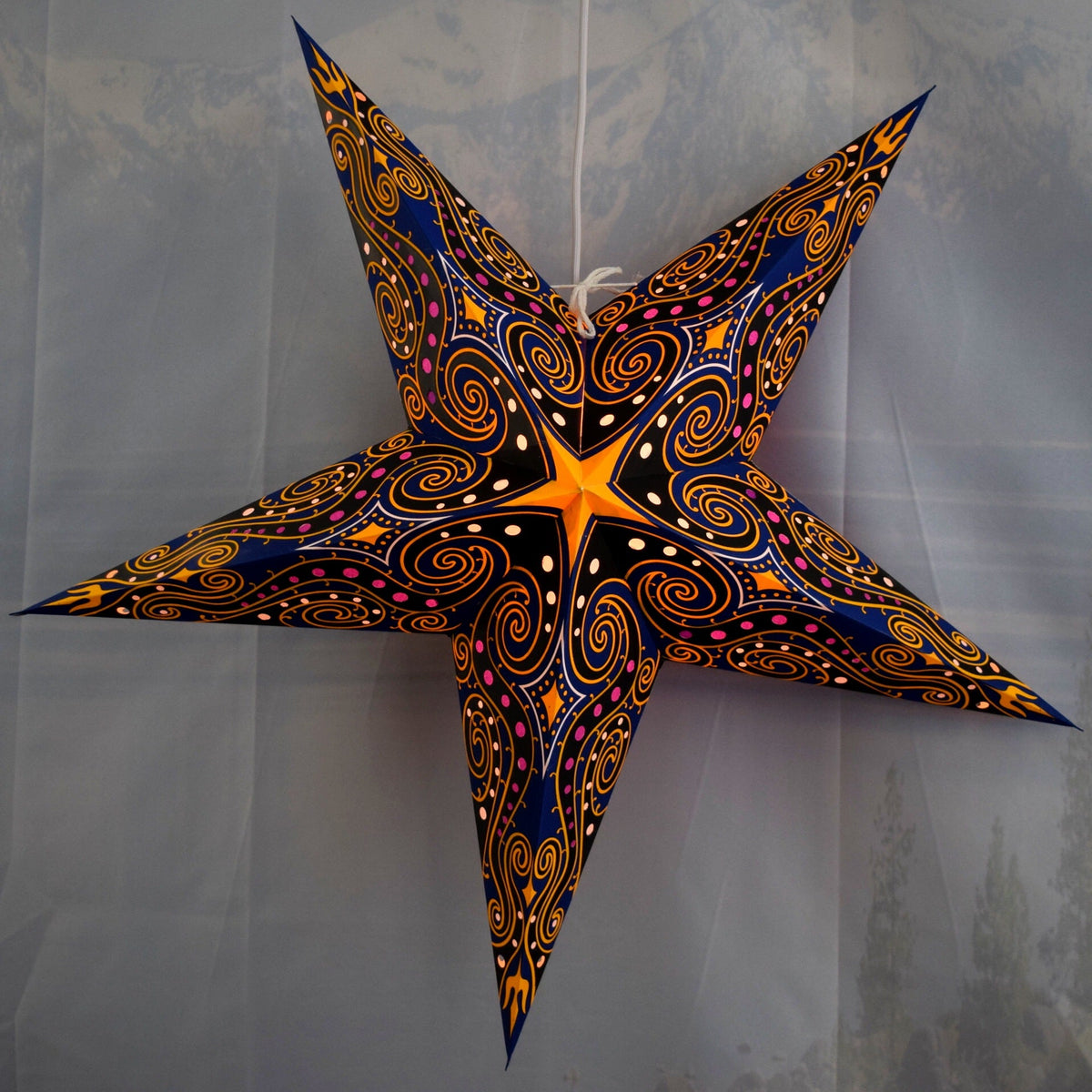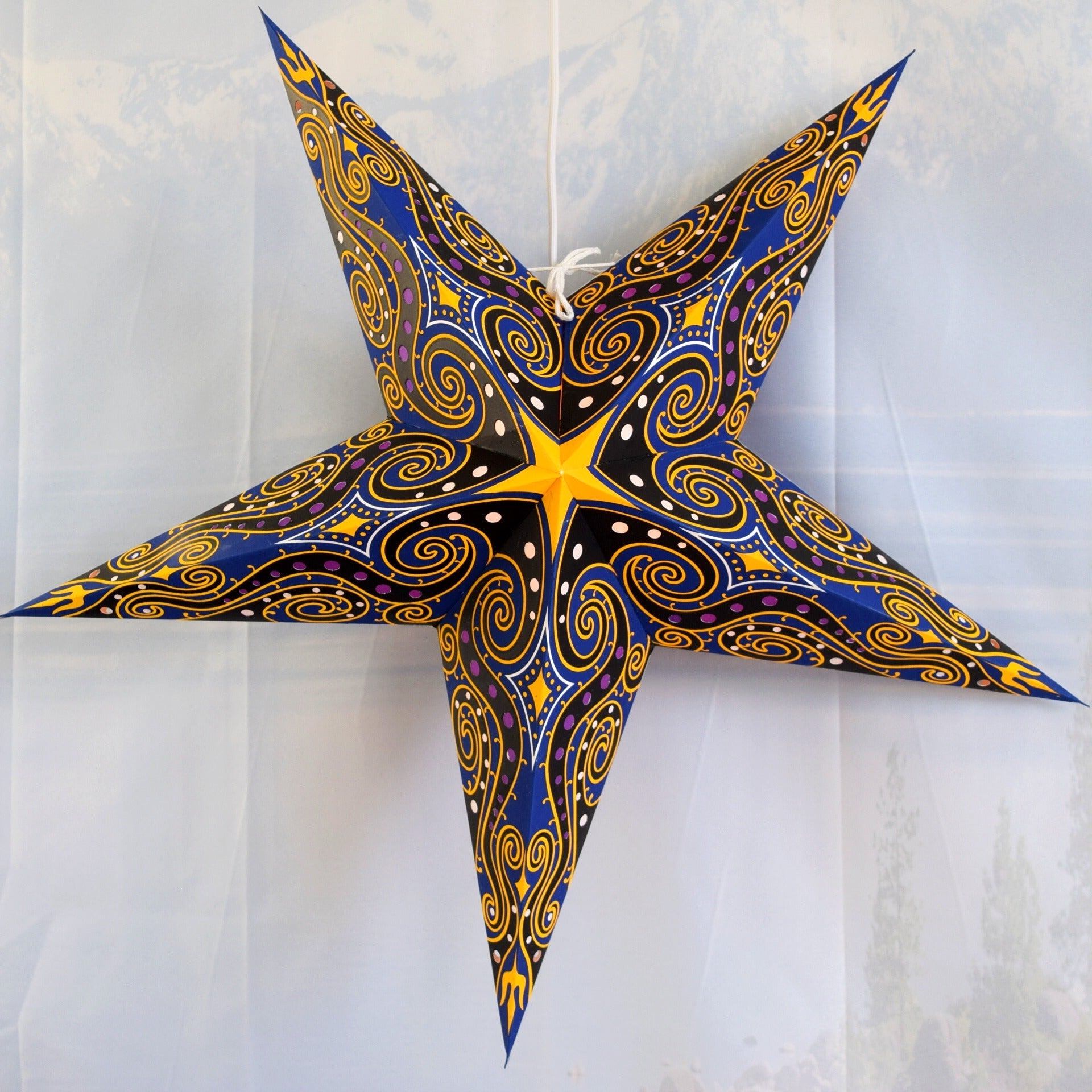 Introducing Luna Bazaar’s hand-crafted hanging Paper Star Lantern KIT, perfect for adding a unique and decorative touch to your home or event. Each kit includes a beautifully designed star lantern, a pendant light cord, and an LED light bulb, making it a complete lighting solution. These high-quality lanterns are crafted from thick paper and feature intricate, punched star designs. Whether for home décor or as a stunning centerpiece for weddings and parties, our star lanterns create a magical ambiance in any setting.