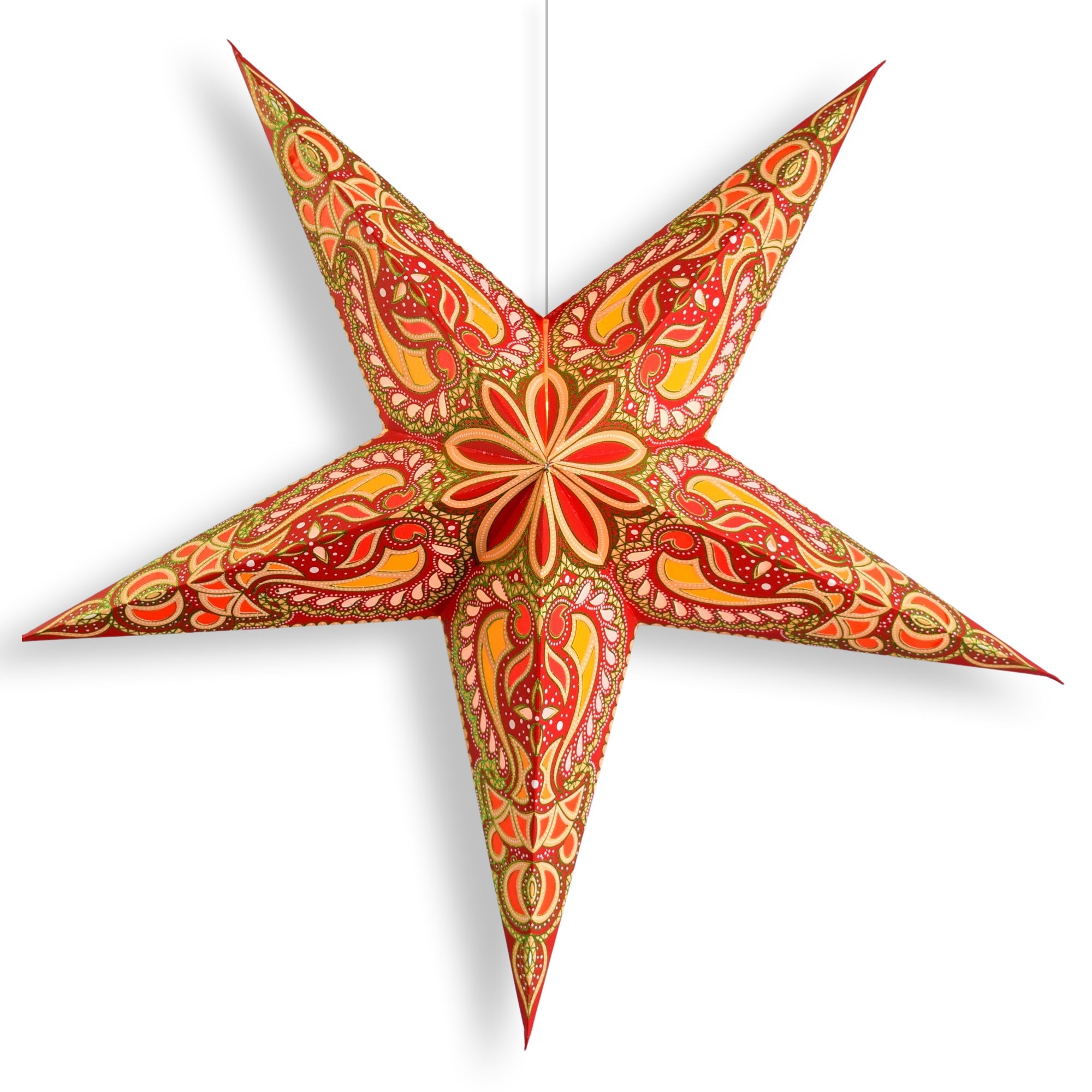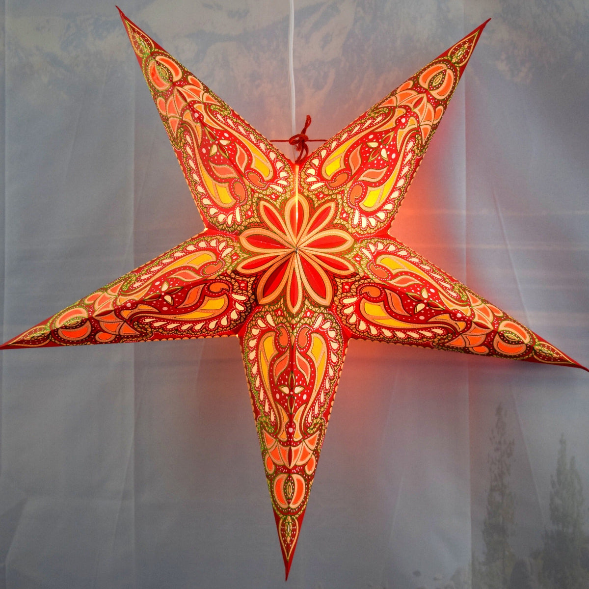 Introducing Luna Bazaar’s hand-crafted hanging Paper Star Lantern KIT, perfect for adding a unique and decorative touch to your home or event. Each kit includes a beautifully designed star lantern, a pendant light cord, and an LED light bulb, making it a complete lighting solution. These high-quality lanterns are crafted from thick paper and feature intricate, punched star designs. Whether for home décor or as a stunning centerpiece for weddings and parties, our star lanterns create a magical ambiance in any setting.