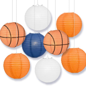 Dimensions of Lanterns: 2x 14" Basketball Lanterns + 6x 14" Team Color Round Lanterns.