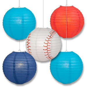 Dimensions of Lanterns: 1x 14" Baseball Lanterns + 4x 14" Team Color Round Lanterns.