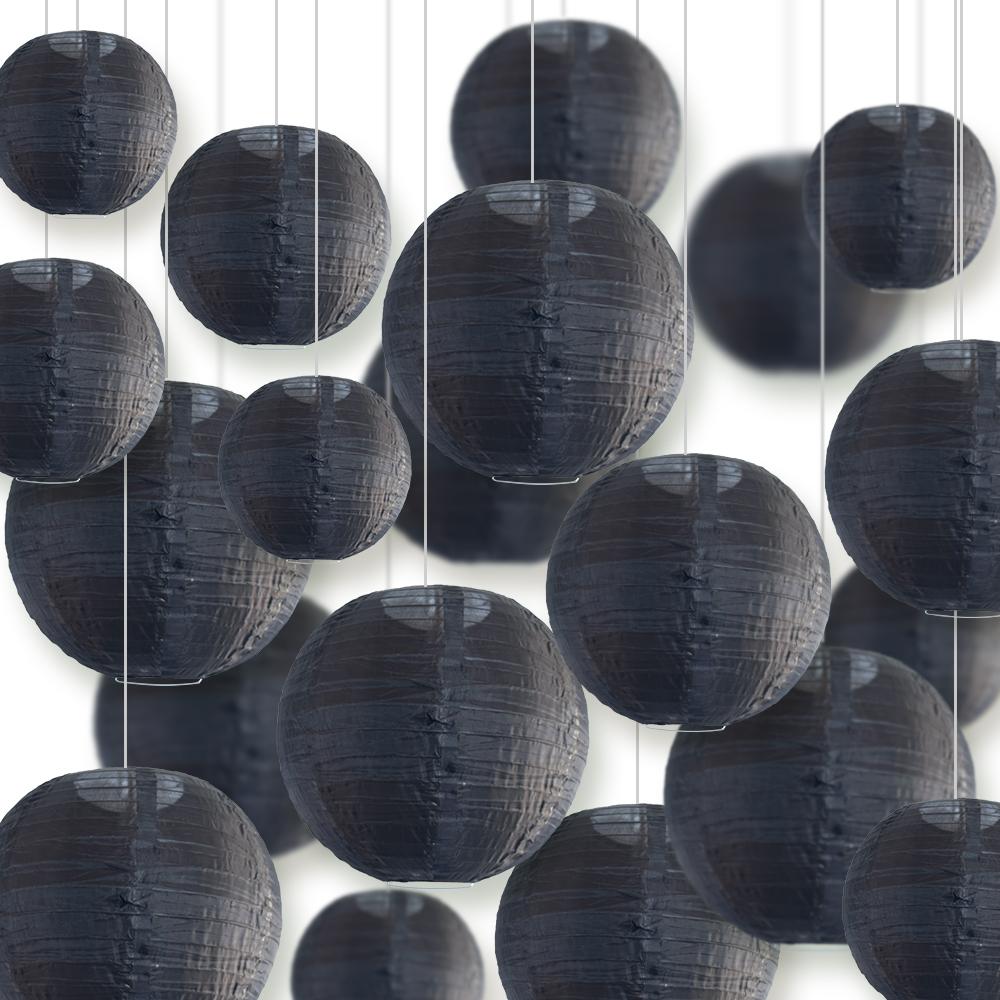 Our convenient Black Nylon Lantern Party Packs like this ultimate 20-piece assortment includes a combination of different-sized Chinese Nylon Lanterns perfect for birthday parties, Weddings and baby showers. String these up on Patio String Lights in your backyard to create an awe-inspiring hanging decoration your guests will talk about for years! Our lanterns can also be clustered for that eye-catching look or placed in and around the home! Our shimmering Nylon Lanterns, or traditional Chinese Lanterns, are the perfect decorating idea for those looking for that unique style and stunningly beautiful ambiance. Decorative Round Nylon Lanterns are a great, budget-friendly DIY choice that can be hung anywhere.