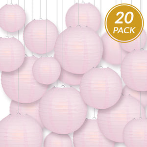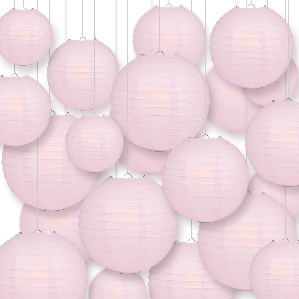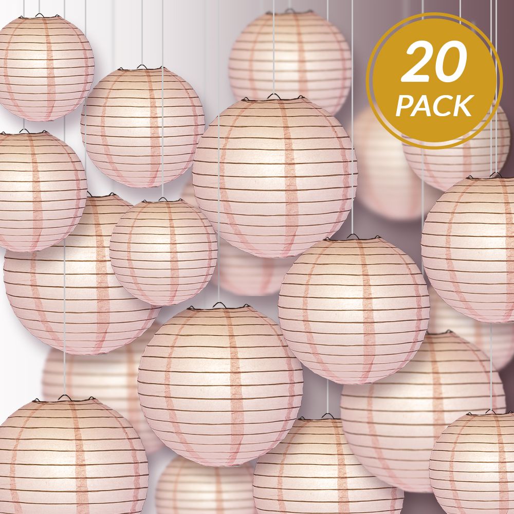 Our convenient Pink Paper Lantern Party Packs like this ultimate 20-piece assortment includes a combination of different-sized Chinese Paper Lanterns perfect for birthday parties, Weddings and baby showers. String these up on Patio String Lights in your backyard to create an awe-inspiring hanging decoration your guests will talk about for years! Our lanterns can also be clustered for that eye-catching look or placed in and around the home! Paper Lanterns, or traditional Chinese Lanterns, are the perfect decorating idea for those looking for that unique style and stunningly beautiful ambiance. Decorative Round Paper Lanterns are a great, budget-friendly DIY choice that can be hung anywhere.