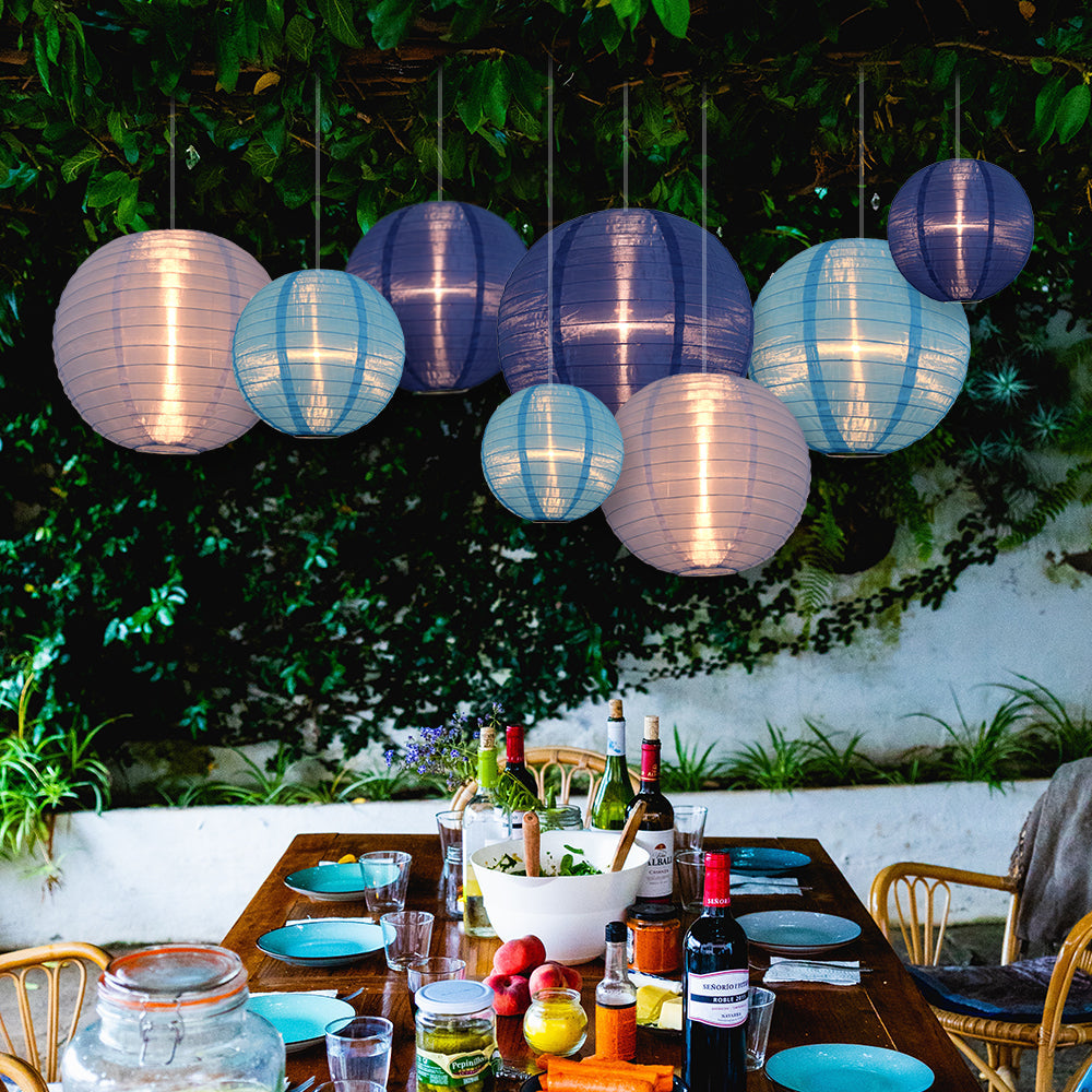 Our convenient Turquoise, Water Blue, and Blue Nylon Lantern Party Packs like this ultimate 20-piece assortment includes a combination of different-sized Chinese Nylon Lanterns perfect for birthday parties, Weddings and baby showers. String these up on Patio String Lights in your backyard to create an awe-inspiring hanging decoration your guests will talk about for years! Our lanterns can also be clustered for that eye-catching look or placed in and around the home! Our shimmering Nylon Lanterns, or traditional Chinese Lanterns, are the perfect decorating idea for those looking for that unique style and stunningly beautiful ambiance. Decorative Round Nylon Lanterns are a great, budget-friendly DIY choice that can be hung anywhere.