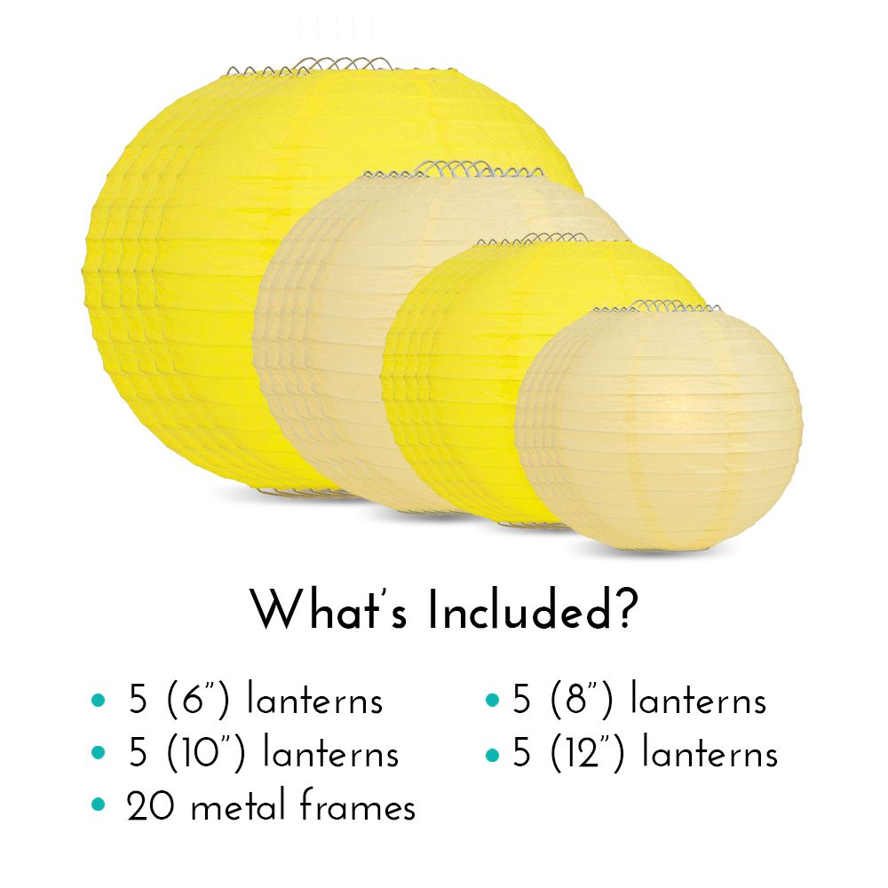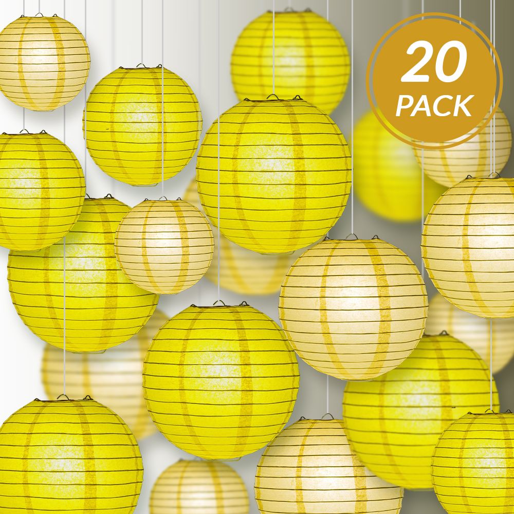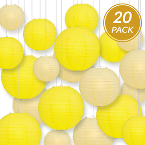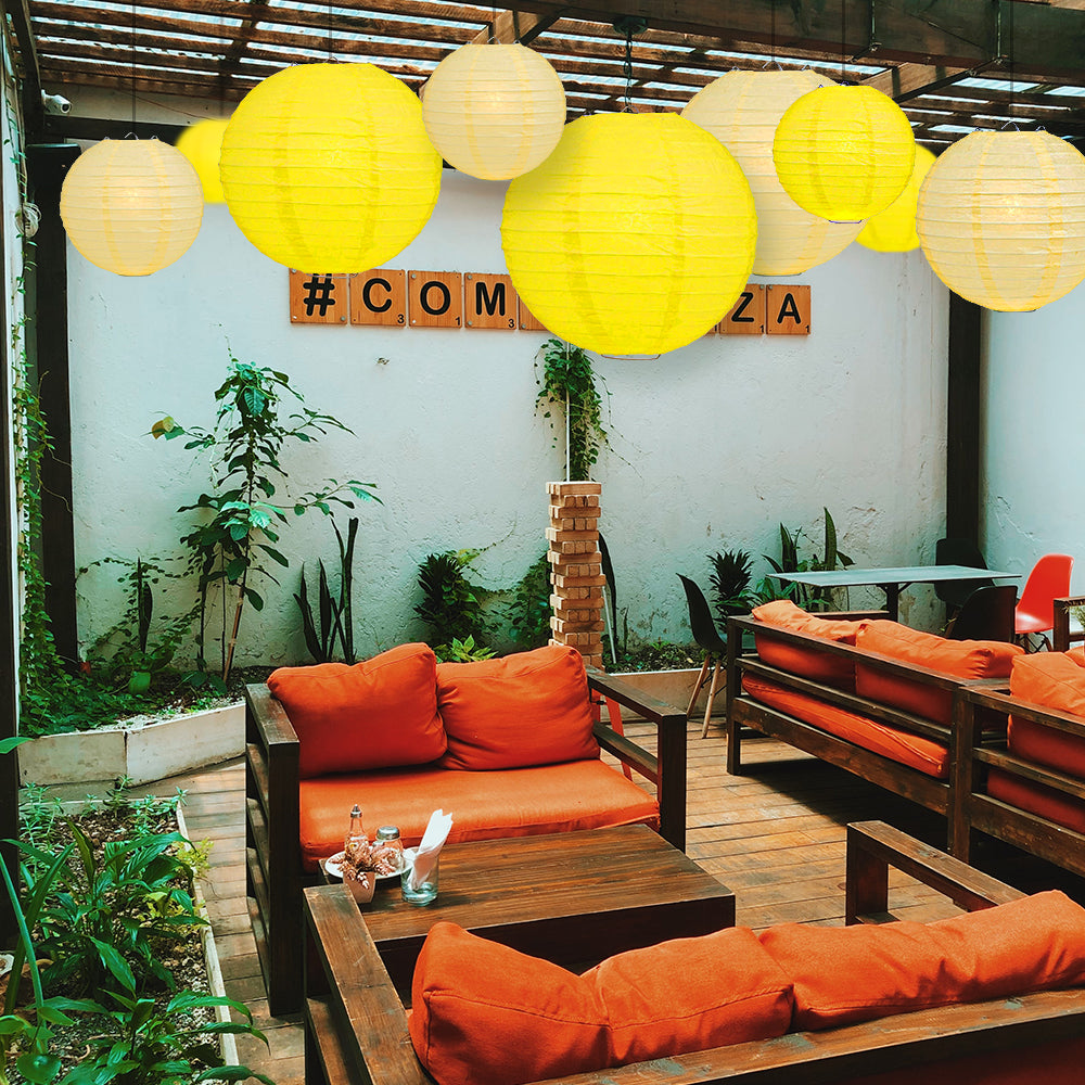 Our convenient Yellow-themed Paper Lantern Party Packs like this ultimate 20-piece assortment includes a combination of different-sized Chinese Paper Lanterns perfect for birthday parties, White Paper Lanterns being the most popular. Mix-and-match different sizes ranging from 4" all the way to giant 42" xl paper lanterns to match your Rustic Chic, Classical, Vintage or Barn theme. Paper Lanterns can be hung on our outdoor Style: Parallel Ribbing