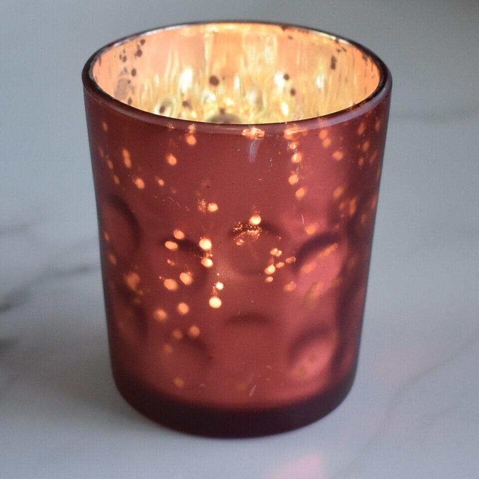 STUNNING Rustic Red Copper MERCURY GLASS: Set of 4 - Our best-selling mercury glass candle holder! 2.5-inch diameter x 3 inches high.