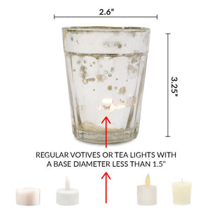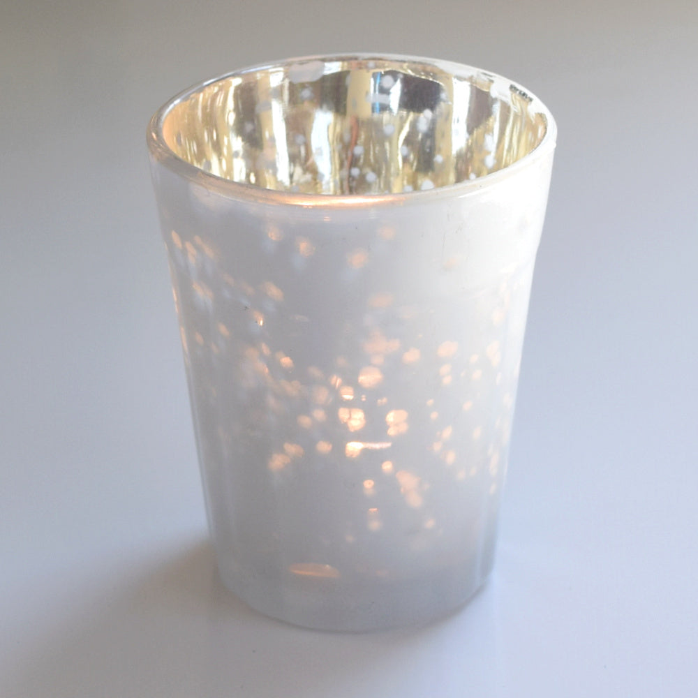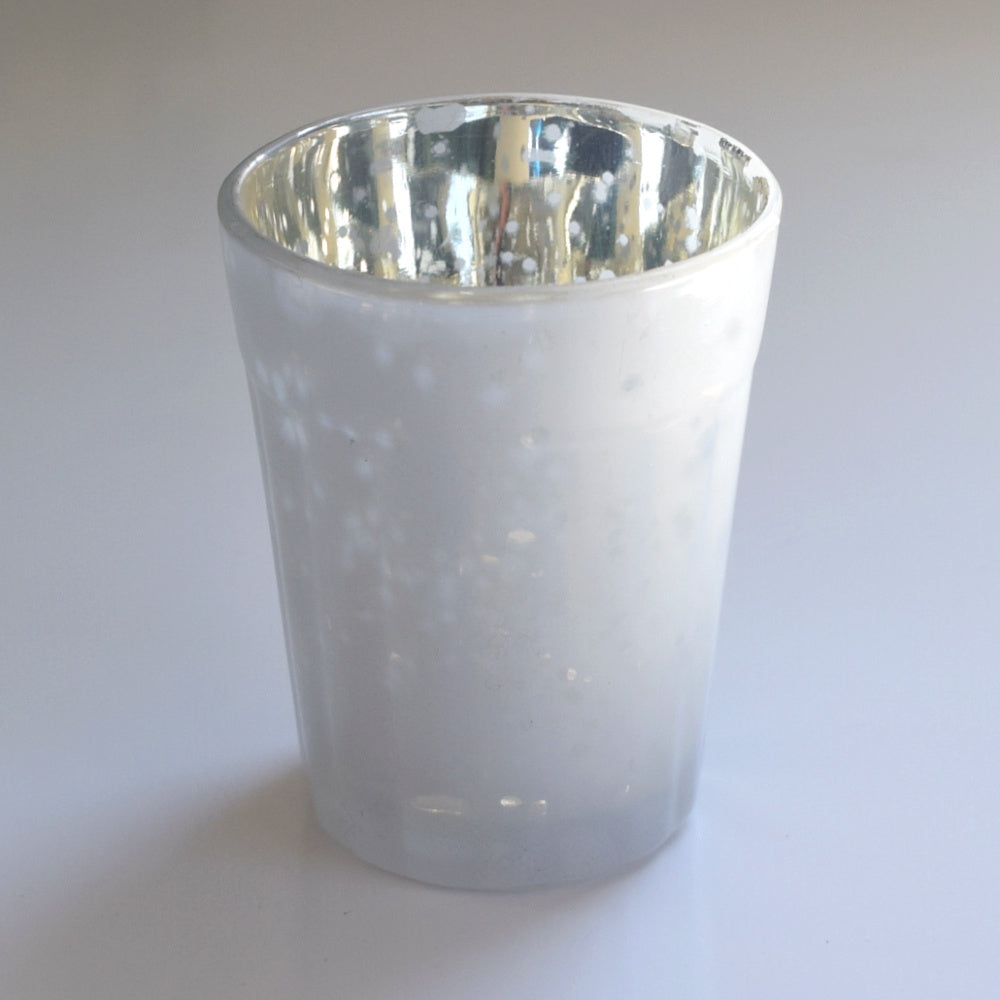 Set of 4 Pearl White Katelyn Mercury Glass Votive Candle Holder - Our columned mercury glass candle holder add dimension and shimmer to your holiday or wedding reception tables! Product Specifications Measurements: 2.5-inch diameter x 3.25-inches high. Food Use?: No Candle: For use with battery operated or real tea light *Please Note: As these are hand-crafted items, each piece may vary slightly in appearance from one another.