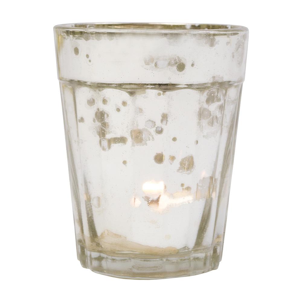 BEST VALUE MERCURY TEALIGHT HOLDER SET - These 2.5" x 3.25" high mercury glass candle holders are a great size wedding & party adornments or as favors for your guests. Beautifully yet affordably decorate any wedding, home, or party with our best-value sets!