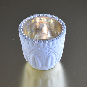 Product Details: Dimensions: 2.75 inches x 2.75 inches high Material: Painted Glass Recommended Lighting: Flameless tea lights or regular tea lights *Please Note: As these are hand-crafted items, each piece may vary slightly in appearance from one another.