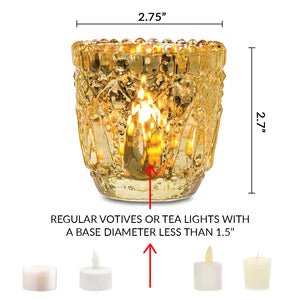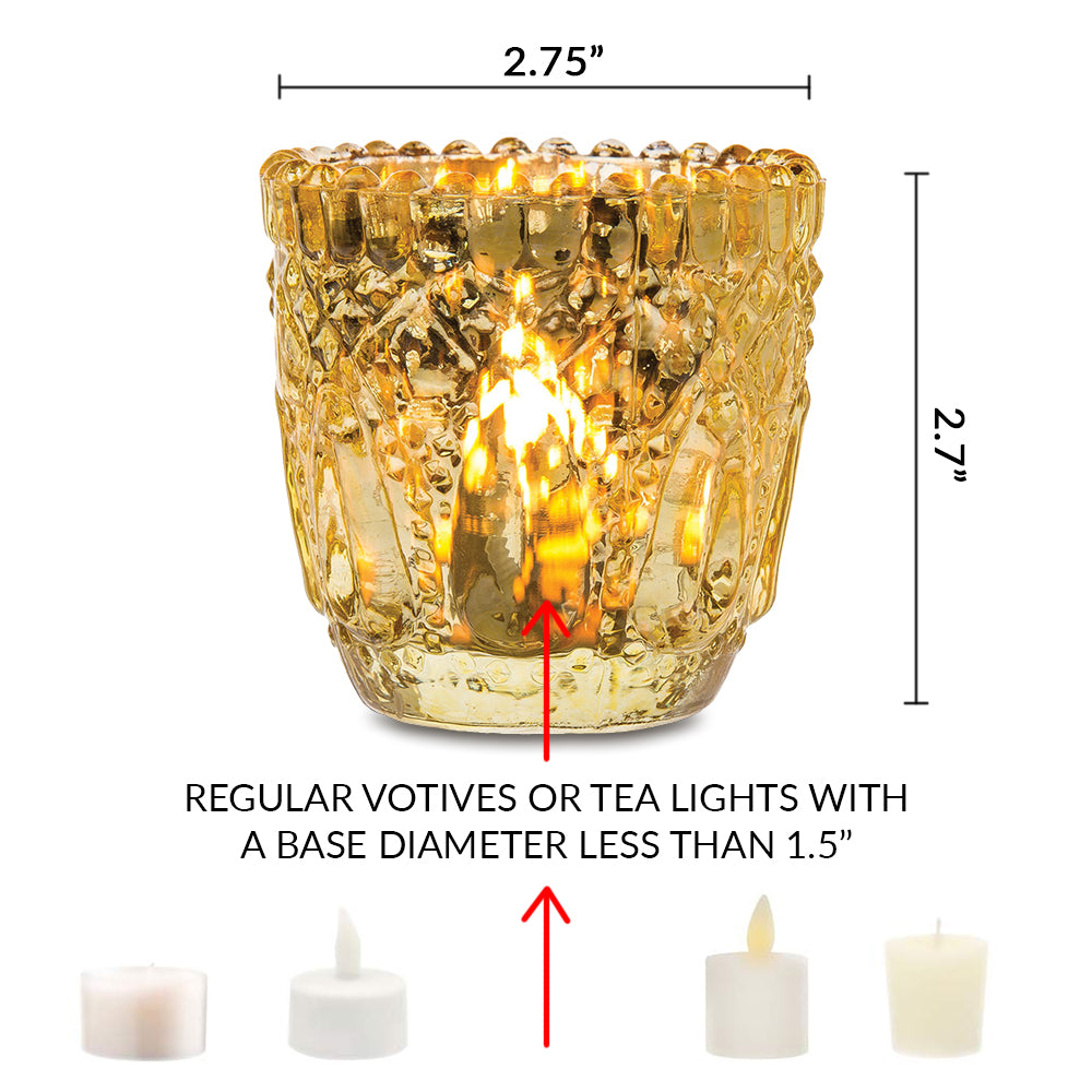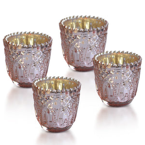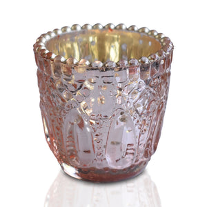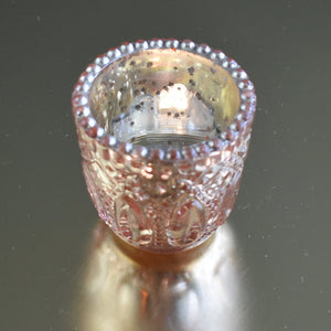 Rose Gold Lillian Faceted Vintage Glass Candle Holder - These glass tea light holders are handpainted and beautiful colors. Multi-faceted, our glass candle holders capture candlelight and gives a beautiful display. Our candle holders are perfect for gifts, parties, weddings, and home decor. The can also be used for flowers! . Product Specifications: Dimensions: 2.75 inches x 2.75 inches high Material: Painted Glass Recommended Lighting: Flameless tea lights or regular tea lights *Please Note: As these are hand-crafted items, each piece may vary slightly in appearance from one another.