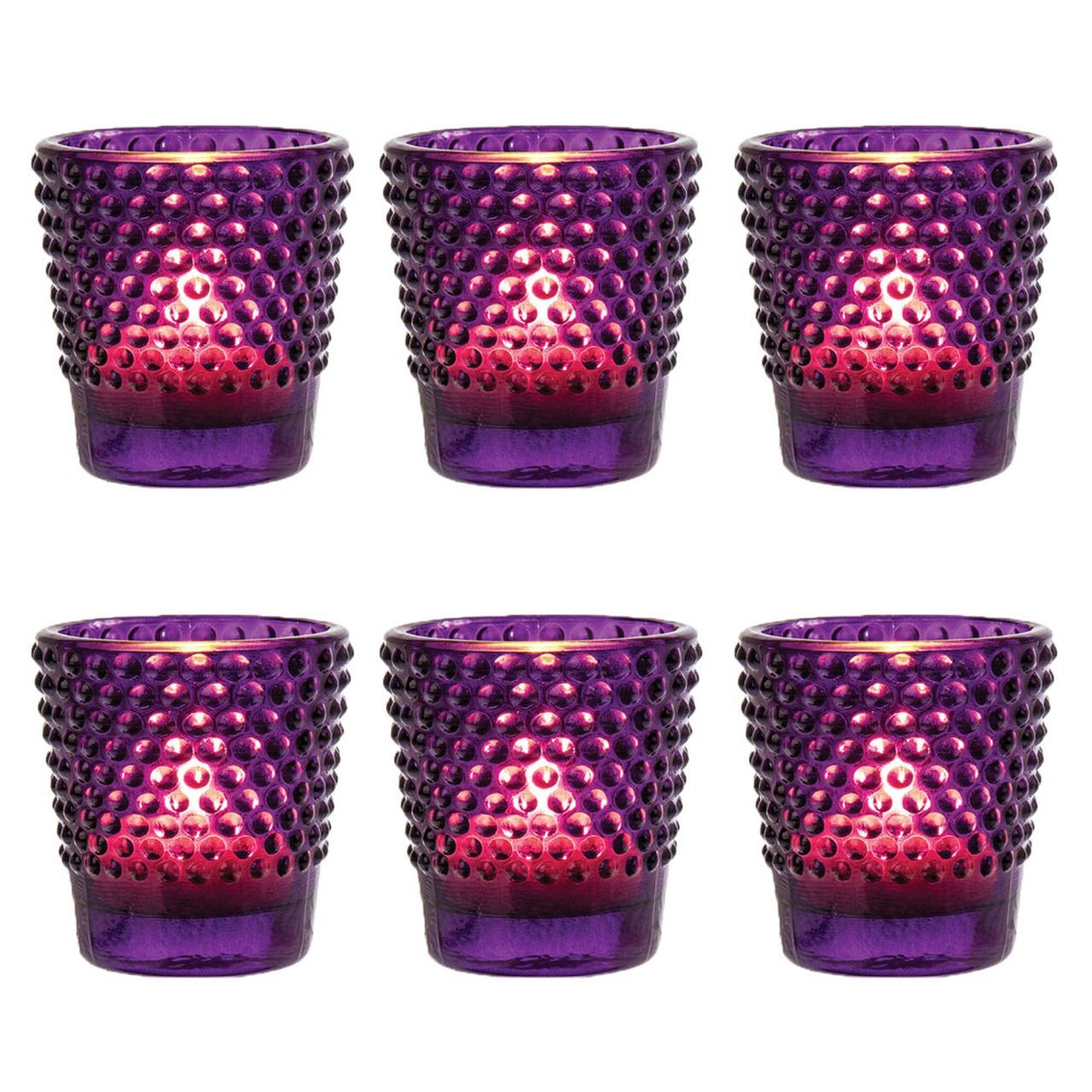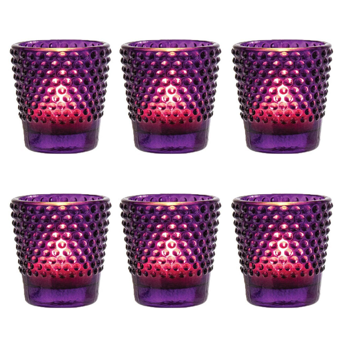 DECORATE WITH EASE - This votive candle holder will always stand out or blend in! The dark purple glass with an elegant hobnail design complements any theme or color scheme, so you can decorate with ease whatever the occasion may be