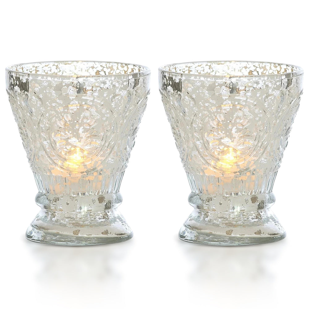 Beautifully-Designed Rosemary Mercury Glass Votive or Tea Light Candle Holder