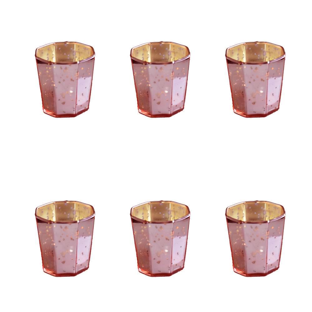 Electric Pink Patricia Mercury Glass Tealight Holders - Set of 6 - Our flat sided mercury glass candle holders are truly unique. They are the perfect addition to your holiday or event tables. Product Specifications Measurements: 2.75-inch diameter x 2.75-inches high. Food Use?: No Candle: For use with battery operated or real tea light