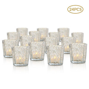 STUNNING TEA LIGHT HOLDERS: For use with tea light candles. Not food safe. Use these silver mercury glass candle holders on tables, mantles, side tables or in other decoration settings.