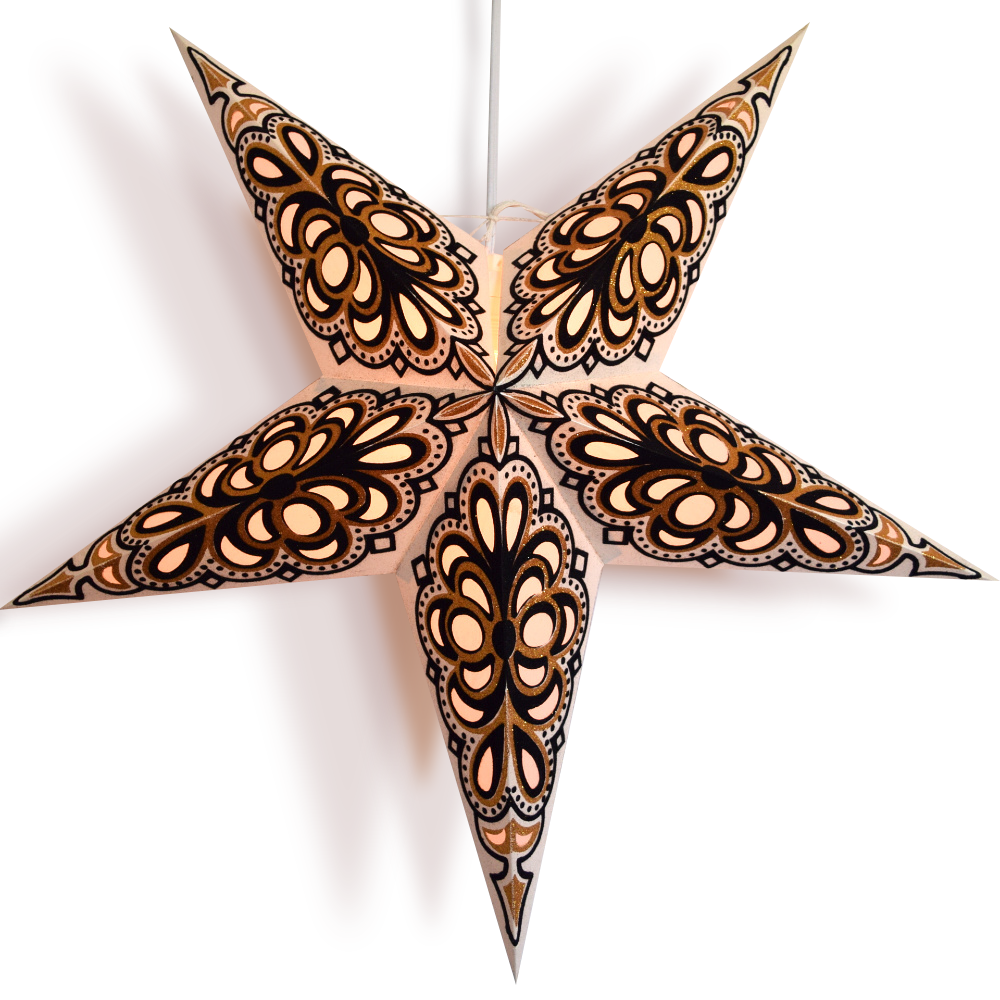 Luna Bazaar's hand-crafted hanging Paper Star Lanterns are beautiful as a home decor accessory or as an outdoor Wedding decoration. These star lantern lamps are high-quality - made from thick paper and punched with a special star design. Available in many colors and patterns, our unique star lanterns have been seen hung on walls and ceilings on TV shows, movies and at concerts. Makes a beautiful display or decoration in any room in the home. Adds a fun touch to any party or event. Pair with one of our Wedding Decorations. These star lantern lamps are high-quality - made from thick paper and punched with a special star design. Available in many colors and patterns, our unique star lanterns have been seen hung on walls and ceilings on TV shows, movies and at concerts. Makes a beautiful display or decoration in any room in the home when paired with one of our lamp cord kits.