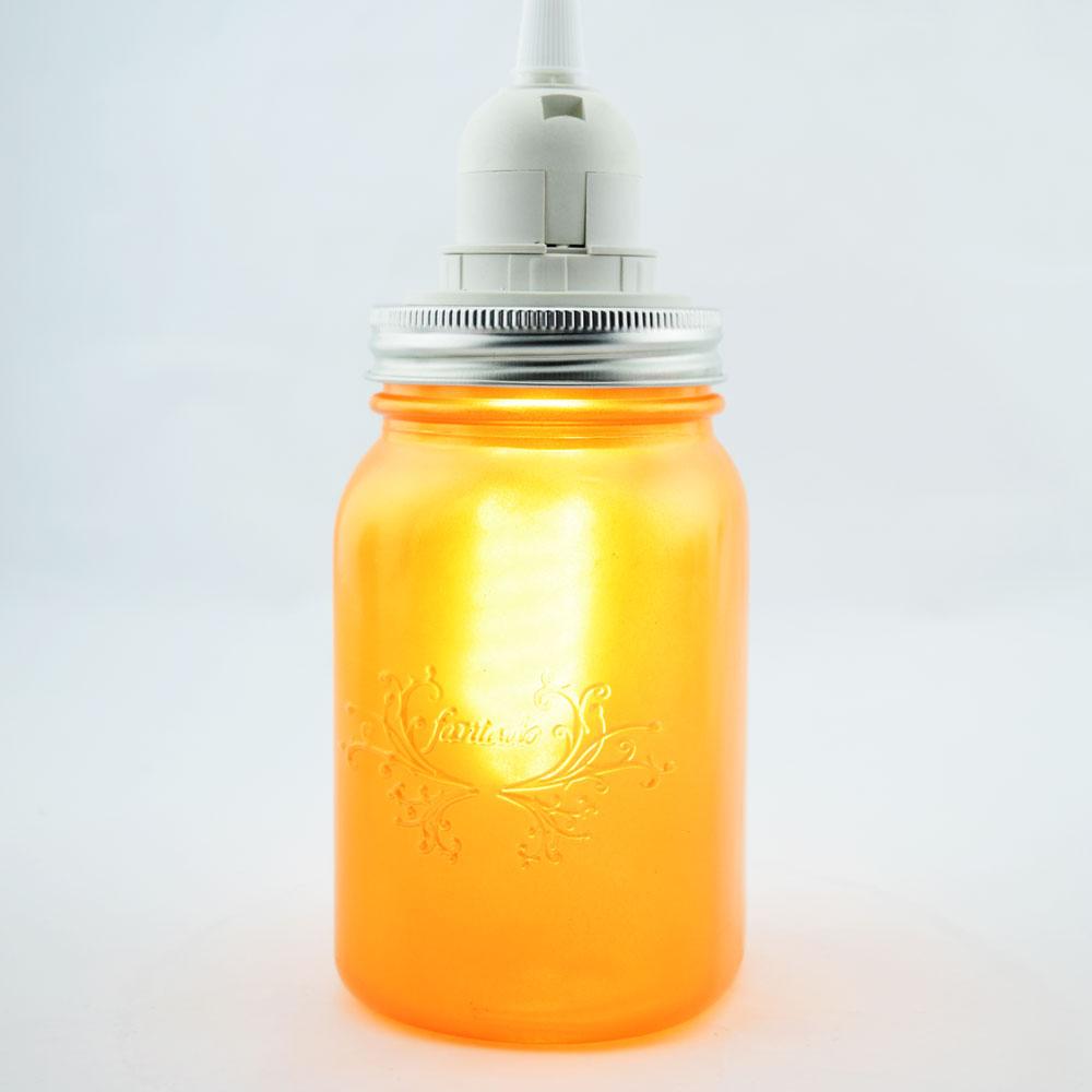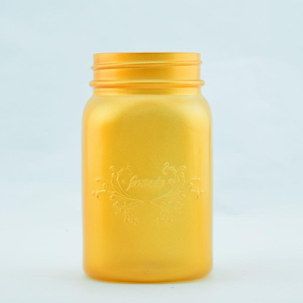 Product Specifications: Jar Capacity: 32oz. Jar Opening Type: Wide Mouth. Jar Color: Frosted Yellow Gold. Jar Dimensions: 3.5 Inches Wide x 6.6 Inches Tall. Jar Circumference: 12 Inches (30.7cm). Pendant Light Lamp Cord: